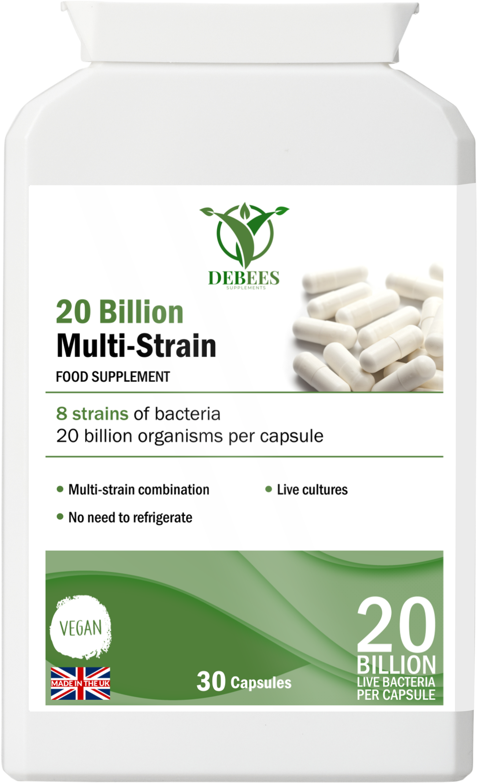 A combination of 8 different live cultures, providing 20 billion viable organisms per capsule:
